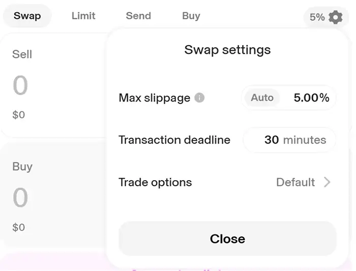 ii. In Swap Settings, set your Max Slippage to 5.00%, then select
